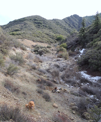 If you go left here it's 1.3 miles to Middle Lion Camp. I hiked from Middle Lion many years ago and passed this junction. I remember it well. It was part of a 30+ mile, three day hike with Domino. We climbed up by Hines Peak which tops out at 6716 Feet. From there, we lowered down to less than 3000 feet, visited the Willet Hot Springs Area and then finally hiked back by Piedra Blanca and then back up to my car. This was a two night adventure, something that I would love to do again real soon!